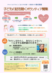 チャイルドラインこおりやまは活動開始11年目となりました。 電話をかけてくれる子どもたちにも、活動を応援していただいている大人の方々にも見やすいホームページづくりをしていきますので、今後ともよろしくお願いいたします。