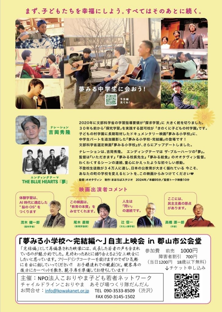 「完結編」として再編集された映像には、成長した若者の声も含まれているのが魅力的で、見終わったあとに語り合いたくなる!そんな上映会ができそうだと思ったのです。